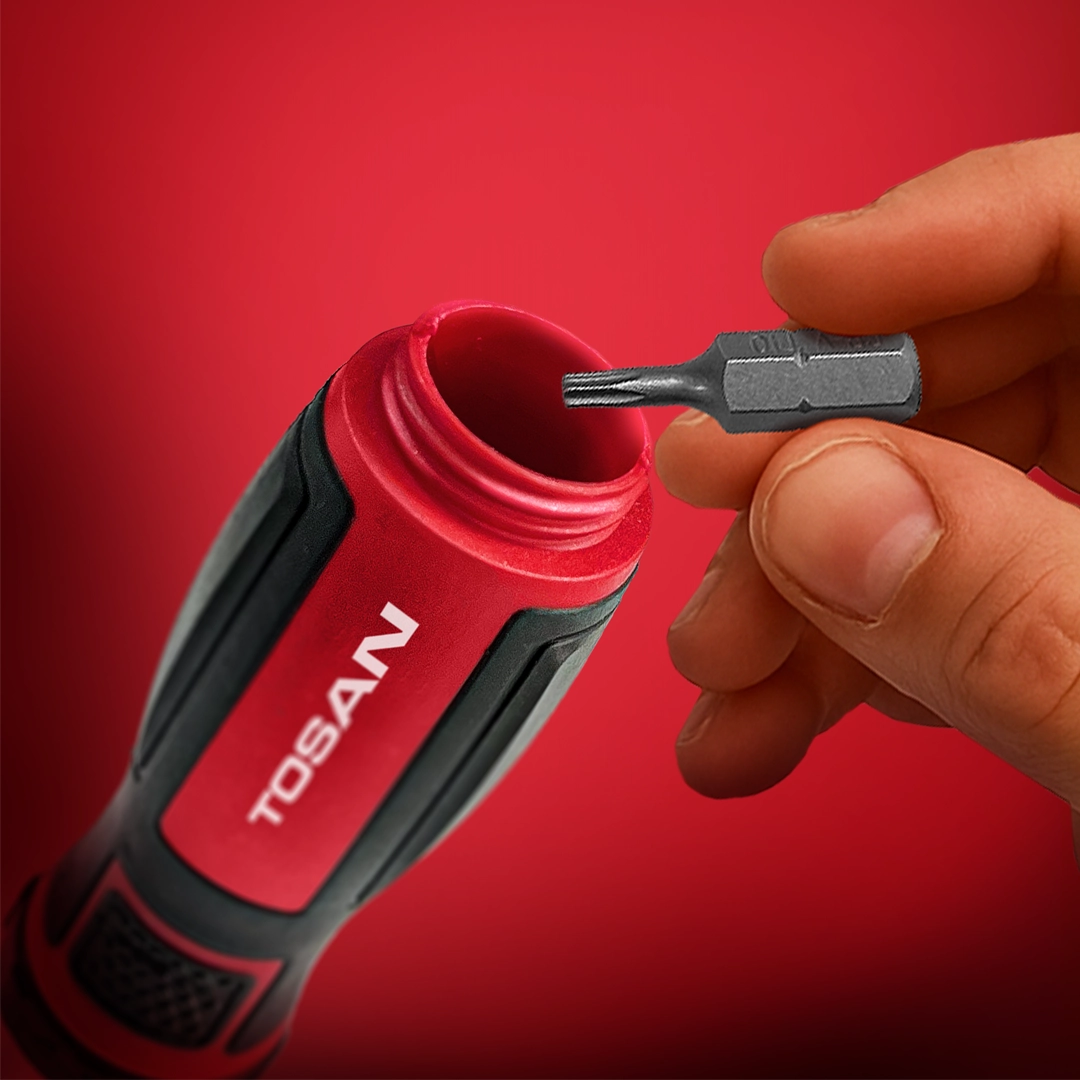 - مجهز به محفظه قرار گیری سر پیچ گوشتی ها در داخل دسته پیچ گوشتی