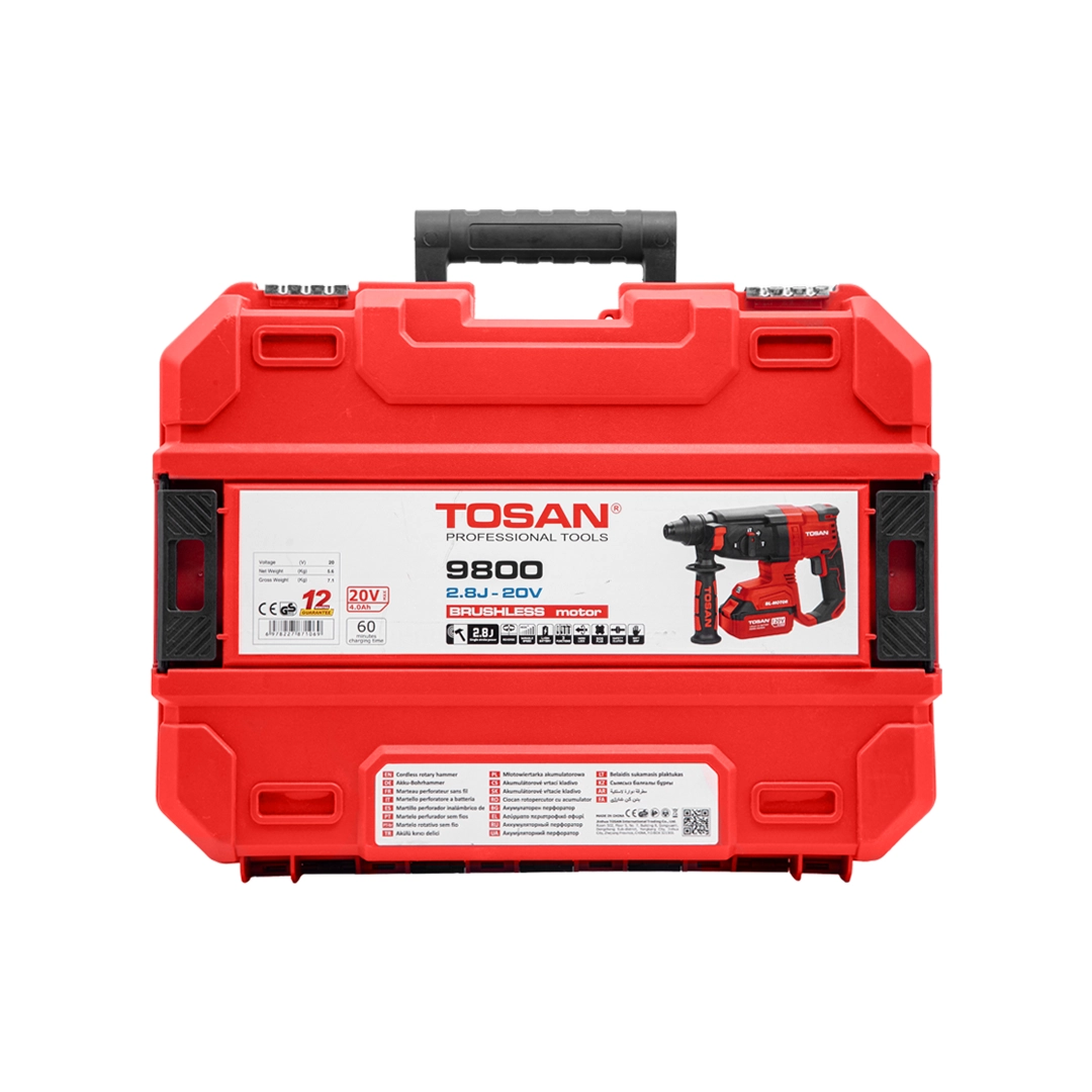 بتن کن شارژی 20 ولت 2 کیلویی مدل 9800 یک ابزار آلات توسن پرقدرت و بدون سیم است که برای عملیاتهای سوراخکاری و تخریب در بتن، آجر، چوب و فلز طراحی شده است. این دستگاه با ولتاژ 20 ولت و تعداد ضربه 5300 ضربه بر دقیقه، نیروی کوبشی بسیار بالایی را با سرعت بیباری 1100 دور بر دقیقه ترکیب میکند. مجهز بودن به موتور براشلس (Brushless)، نه تنها مصرف باتری را بهینه کرده بلکه دوام و طول عمر آن را نیز افزایش میدهد. این مدل مجهز به ابزارگیر چهارشیار (SDS PLUS) است که تعویض سریع و مطمئن مته و قلم را تضمین میکند.