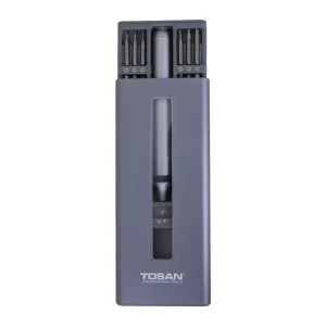 پیچگوشتی الکترونیکی 3.7 ولت توسن مدل 9001، ساخت کشور چین و زیرمجموعه ابزارهای شارژی توسن بوده که به دلیل بدنه فوق باریک، سبک و خوش دست و وزنی معادل 52 گرم تجربهای بینظیر از کار با ابزارهای الکترونیکی را برای شما فراهم میکند. این محصول دارای چراغ LED به منظور کار در محیط های کم نور بوده تا دید کاملی از محل کار را به کاربر بدهد . همچنین مجهز به 48 عدد سرپیچ گوشتی بلند و کوتاه همراه با پنس و کارتک دوطرفه است.