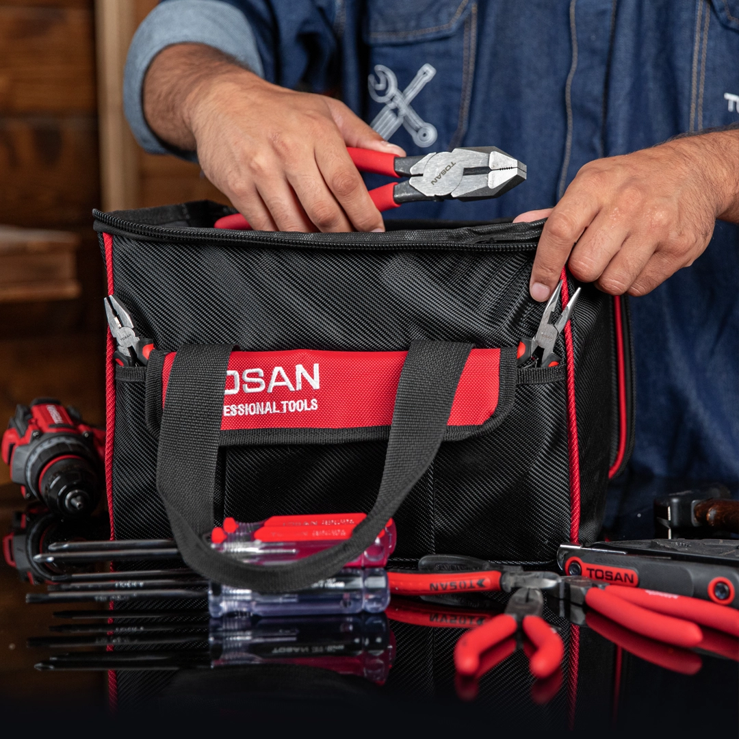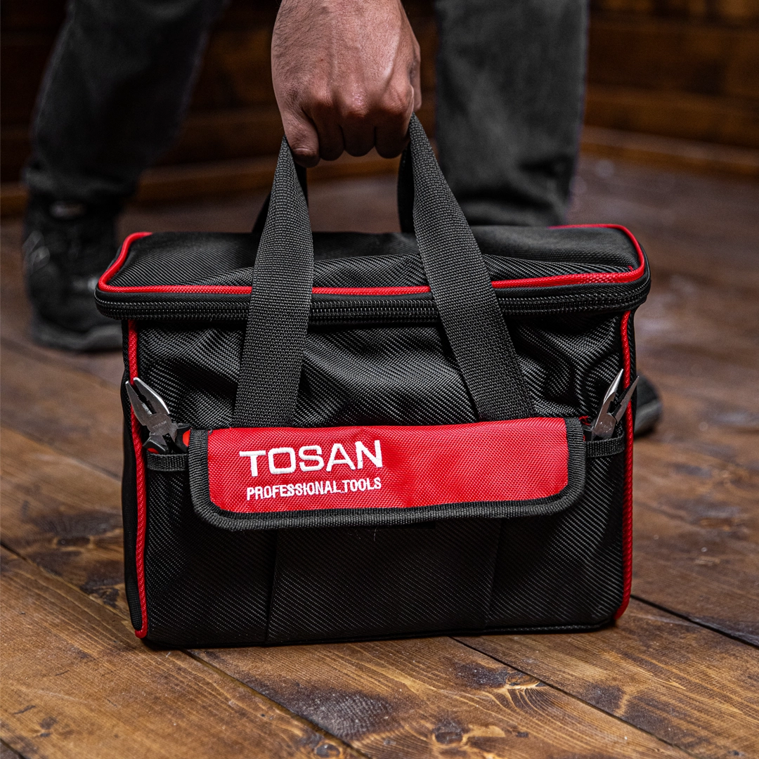 کیف ابزار دور زیپ 30 سانت توسن با کد محصول TB-30S، ابزاری از زیرمجموعه ابزار دستی توسن است که از آن برای نگهداری و حمل ابزارهای دستی کوچک و متوسط استفاده میشود. جنس این کیف از پارچه پلی استر دولایه ضدآب (برزنتی) بوده و به روش صنعتی و دوخت مقاوم تهیه شده است. همچنین دارای 5 جیب به منظور استفاده برای نگهداری از ابزار با سایزهای متفاوت است و به علت سبک و مقاوم بودنش، قابلیت حمل و جابجایی راحتی دارد.